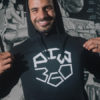 PTW360 Black Hooded Sweatshirt, with 2-cord.